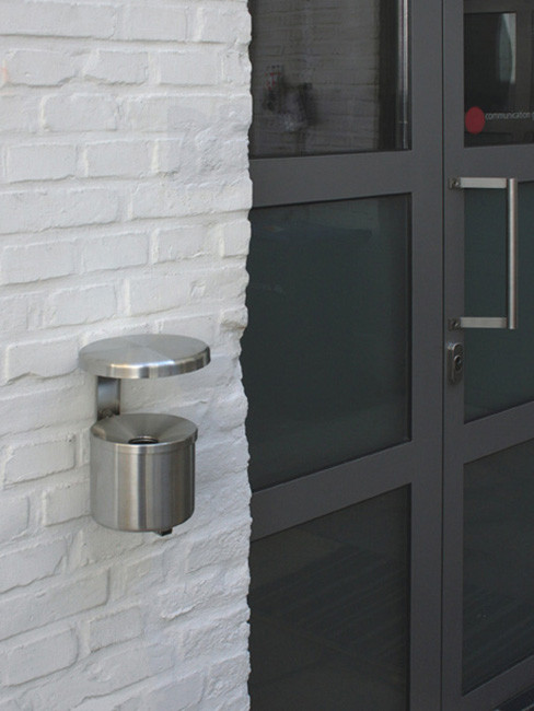 Mit seiner klassischen runden Form präsentiert sich diese Aschenbecher aus gebürstetem Edelstahl mit einem Trichteraufsatz. Die daraus resultierende selbstverlöschende Wirkungsweise macht diesen Tischaschenbecher Edelstahl besonders attraktiv für sensible öffentliche Bereiche. Gerne wird dieser auf Passagierschiffen verwendet, da der Trichter einen Windschutz bietet. Die Wandschascher, in verschiedenen Größen erhältlich, werden gerne in Eingangsbereichen aufgehangen. Der Körper und der Trichter sind über Kippscharniere mit dem Wandhalter fest verbunden. Dies verhindert den Verlust oder Diebstahl einzelner Teile, und ermöglicht die einfache Entleerung.