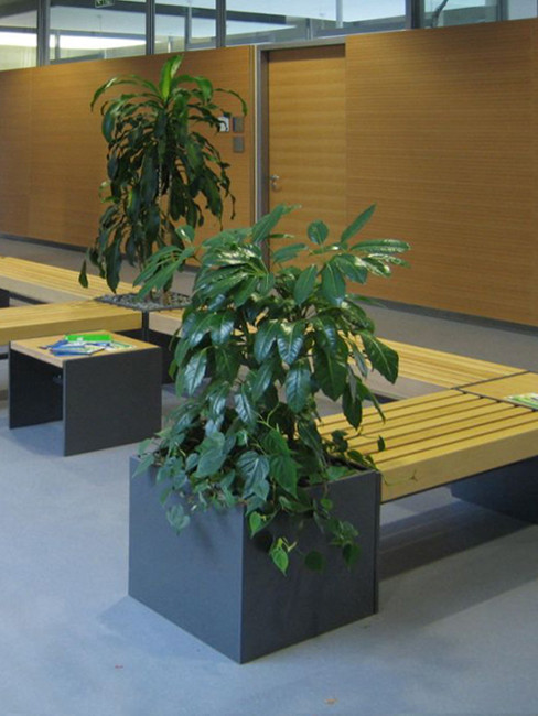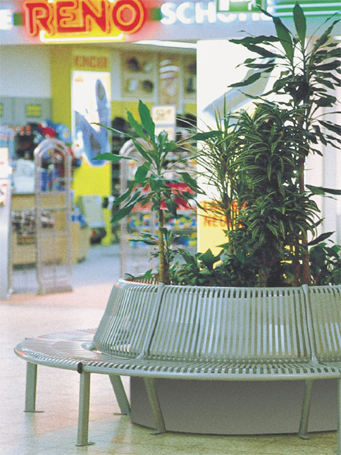 Jedes einzelne Produkt aus diesem Programm wird selbstständig entwickelt, getestet, gegebenenfalls optimiert und anschließend sorgfältig produziert. Die langjährige Erfahrung und das Wissen aus vielen produzierten, im Alltag bewährten Produkten, zeigt sich im Vertrauen unserer Kunden, die immer wieder auf diese Produkte zurück greifen. Denn das preiswertere Produkt hat nicht zwangsläufig das bessere Preis/Leistungs-Verhältnis. Die Bankelemente mit zum Teil hoher Vandalismus-Sicherheit, kombiniert mit häufig maßgefertigten Pflanzgefäßen, sehen auch nach Jahren der Beanspruchung noch ansprechend und ordentlich aus. Ausschlaggebend ist hier ein durchdachtes Konstruktionsprinzip, die Verwendung der "richtigen" Materialien sowie eine überdurchschnittlich gute Verarbeitung. Eben alles 'Made in Germany'. Die sogenannten Pflanzeninseln werden gerne in Fachmarkcentern eingesetzt und lassen sich flexibel verändern und umpositionieren.