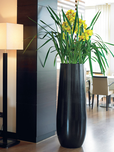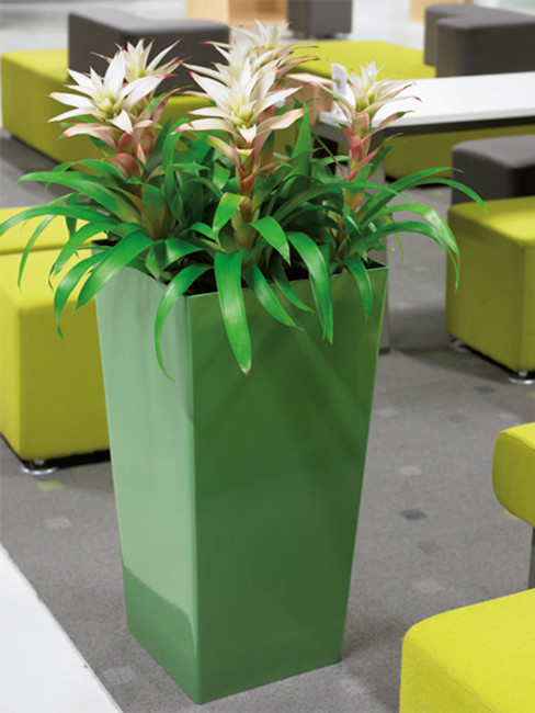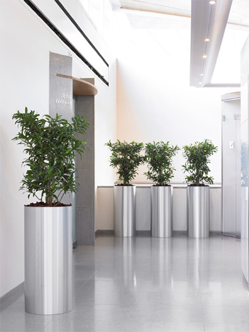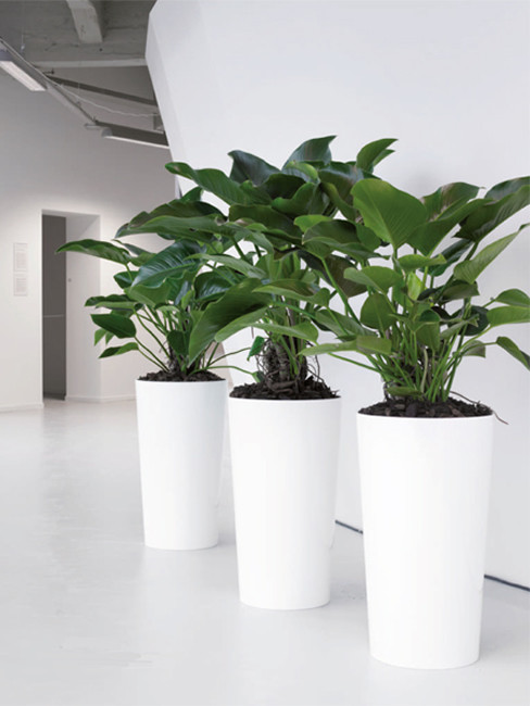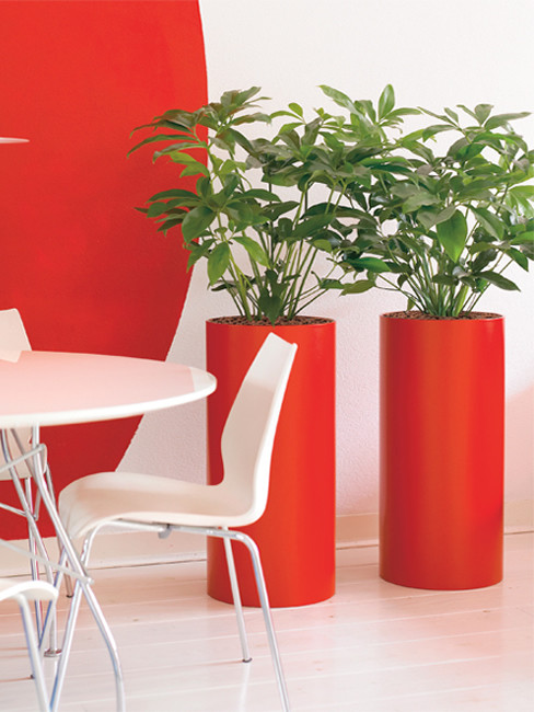 Pflanzensäulen aus lackiertem Kunststoff oder Edelstahl natur geschliffen, in vielen verschiedenen Ausführungen und Höhen. Ob zylindrisch, quadratisch, konisch oder bombiert, für jedes Designkonzept das passende Produkt. Die Standard RAL-Farben für die Kunststoffgefäße sind Reinweiß, Perlweiß, Verkehrsgrau B, Steingrau, Olivgrün, Tiefschwarz, Weißaluminium, Graualuminium, Braunrot und Blaßbraun; jeweils in struktur, matt oder glänzend
